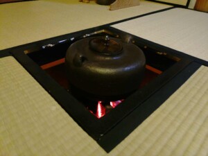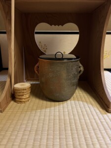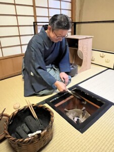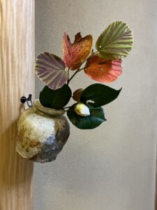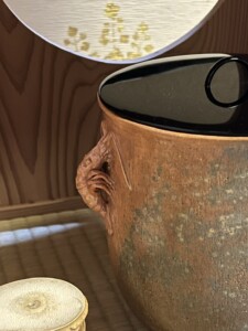 水指は、大樋焼の九代長左衛門作の「海老耳水指」